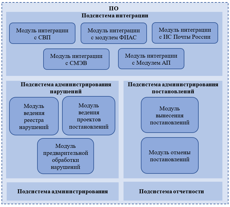 ПО предназначено для обеспечения автоматизации процессов деятельности и информационного обмена организаций и учреждений, участвующих в процессах:- фиксации нарушений ПДД по ч.1-2 статьи 12.21.4 КоАП РФ;
